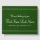 Este sobrio libro de visitas para el funeral/recuerdo conmemorativo muestra el mensaje "Pensamos en ti", y el nombre personalizado y las fechas de nacimiento/muerte de la persona que ha fallecido. Se podría usar para registrar deseos solidarios para los parientes y amigos de alguien que ha fallecido recientemente.