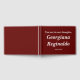 Este simple libro de visitas funerarias o conmemorativas incluye el mensaje "Estás en nuestros pensamientos", y el nombre personalizado y las fechas de nacimiento/muerte del individuo que ha fallecido. Se podría usar para registrar deseos solidarios para los parientes y amigos de alguien que ha fallecido recientemente. El texto es blanco y el fondo es rojo oscuro.