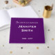 Este respetable libro de visitas funerarias/conmemorativas contiene el mensaje "Estás en nuestros recuerdos", y el nombre personalizado y las fechas de nacimiento/muerte de la persona que ha fallecido. También presenta un fondo morado oscuro y texto blanco. Se podría usar para registrar recuerdos preciados de alguien que ha fallecido recientemente.