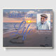 Añada una foto favorita de su ser querido, junto con el nombre completo y las fechas de su vida, a este hermoso libro de invitados "Celebración de la vida" diseñado alrededor de una asombrosa foto de la puesta de sol sobre el océano con un corazón dibujado en la arena. Al fondo hay espacio para una cita o una escritura especialmente significativa para tu difunto ser querido. El texto está en contrastar fuentes en azul con la sombra exacta seleccionada para contrastar con el fondo.