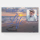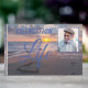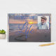Añada una foto favorita de su ser querido, junto con el nombre completo y las fechas de su vida, a este hermoso libro de invitados "Celebración de la vida" diseñado alrededor de una asombrosa foto de la puesta de sol sobre el océano con un corazón dibujado en la arena. Al fondo hay espacio para una cita o una escritura especialmente significativa para tu difunto ser querido. El texto está en contrastar fuentes en azul con la sombra exacta seleccionada para contrastar con el fondo.
