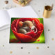 Adorable ilustracion de un diminuto ratón durmiendo pacíficamente dentro de una flor roja floreciente. Este encantador diseño aporta calidez y ternura, lo que lo hace perfecto para regalos, decoración casera o keepsakes personales. Puede personalizar cada diseño agregando su propio texto o redimensionándolo para que se ajuste a su espacio - sólo tiene que hacer clic en el botón "editar diseño" de arriba. Las obras de arte se pueden aplicar a una variedad de productos, incluyendo arte mural, tazas, tarjetas, bolsos de té, almohadas y más.