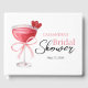 Libro de invitados de Baby Shower Nupcial moderno y elegante con bebida de cóctel de acuarela con un lazo rosa y texto de caligrafía vibrante.