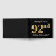 El diseño de este libro de huéspedes incluye el número ordinal "92" con un aspecto de imitación de oro. También incluye un nombre personalizado y un fondo de color negro. Se podría usar en un fiesta para alguien que celebre su 92º cumpleaños. [~Z0000054]