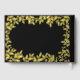 A stylish black background. Personalize and add your names and wedding date. Decorated with foliage
