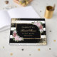 Elegante libro de huéspedes con ducha de novia florida en blanco y negro con flores rosas de color rosa que enmarcan los detalles de la ducha dentro de un marco dorado contra un fondo de rayas blancas y negras adornado con confeti dorado. Elementos coincidentes disponibles.