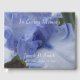 Mantener recuerdos del servicio de memorial/funeral de un ser querido en este libro de invitados personalizado que presenta la imagen fotográfica floral de una elegante flor azul claro de Iris. Personaliza tu libro de invitados editando y reemplazando el texto de la portada con el nombre y las fechas de nacimiento/muerte de la persona para la que se celebra la vida. Seleccione su estilo de libro de invitados.
