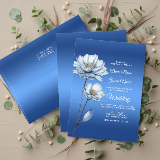 Beautiful Blue Watercolor Flowers Guest Book
