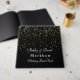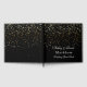 Este libro de visitas se presenta en un color negro con una cortina de estrellas petite de colores dorados, tanto en el frente como en la parte trasera, y está salpicado por todo el libro de visitas. Front tiene texto que lee sus dos nombres personalizados en un guión elegante, su apellido en negrita. Páginas negras sólidas, usadas para la firma de plumas metálicas o como libro de fotos. Personalice este libro y cambie el texto de ejemplo al suyo.