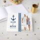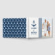El libro de invitados para bodas personalizado presenta un tema náutico con ancla azul marino, patrón de rayas, texto personalizado y foto que se puede personalizar.