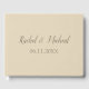 Este bonito libro de bodas de temática beige es realmente de este tipo. Con un fondo beige con un tipo de letra marrón, el nombre de la pareja se presenta en un moderno tipo de letra cursiva marrón con la fecha boda debajo de marrón. Personalizar tu libro de bodas hoy!