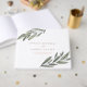 Libro de firmas de boda botánico elegante acuarela con hermosas ramas de olivo dibujadas a mano enmarcando tus detalles. Personaliza con tus nombres y fecha de boda en tipografía de color natural.