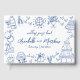 Esbozos exquisitos inspirados en el azul y el blanco, dibujados a mano, de inspiración europea, para Bodas de un libro de invitados. Este diseño creativo y lúdico es perfecto para las parejas que desean un conservador único y alegre para su día especial. Con un estilo atemporal en blanco y negro con acentos azules, el libro de invitados presenta divertidos ilustraciones dibujados a mano que fluyen dinámicamente por el frente, la espalda y la columna vertebral para un aspecto cohesivo y artístico con un toque de encanto europeo. En la cubierta se exhiben extractos caprichosos de elementos bodas, entre ellos una brillante bola de disco, campanas bodas, una cámara vintage, una torre de champán, corazones, un pastel coronado, flores y un coche "Just Married", que le confieren al diseño un ambiente animado y elegante. En la parte superior, las palabras "Guía del Boda" se muestran en una mezcla de guiones y tipos de letra manuscritos. A continuación, se presentan de forma destacada los nombres de la novia y del novio, así como la fecha del boda. En la parte trasera, un simple monograma inicial de las primeras iniciales de la novia y el novio vincula el diseño con el resto. La columna vertebral incluye sus nombres y fecha de boda, lo que hace de este libro de visitas una adición hermosa y memorable a su celebración. Todo personalizable para adaptarse a su estilo, está disponible como un keepsake impreso.