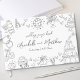 Canto De Huéspedes De Inspiración Europea, Gris, Dibujado A Mano, Quirky Esboza Un Exquisito Libro De Bodas. Este diseño creativo y lúdico es perfecto para las parejas que desean un conservador único y alegre para su día especial. Con un estilo atemporal en blanco y negro con acentos grises suaves, el libro de invitados presenta ilustraciones dibujados a mano que fluyen dinámicamente por el frente, la espalda y la columna vertebral para un aspecto cohesivo y artístico con un toque de encanto europeo. En la portada se exhiben extractos caprichosos de elementos bodas, entre ellos una brillante bola de disco, campanas bodas, una cámara vintage, una torre de champán, corazones, un pastel en escalera, flores y un coche "Just Married", todo en gris para un ambiente más suave y refinado. En la parte superior, las palabras "Guestbook Boda" se muestran en una mezcla de guiones y tipos de letra manuscritos en gris. Debajo, los nombres de la novia y del novio y la fecha del boda aparecen de forma prominente en el mismo tono gris. En la parte trasera, un simple monograma inicial de las primeras iniciales de la novia y el novio vincula el diseño con el resto. La columna vertebral incluye sus nombres y fecha de boda, lo que hace de este libro de visitas una adición hermosa y memorable a su celebración. Todo personalizable para adaptarse a su estilo, está disponible como un keepsake impreso.