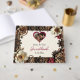 boda bonito personalizó los nombres de novias y novios y el libro de fotos del corazón con un tema de steampunk. Flores metalizado brillantes con fondo dorado, cobre y paisajista burdeos.