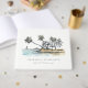 Colección temática de la acuarela Tropical Coastal Palm Trees Sketch Watercolor.- es un guión elegante Ilustracion de acuarela Sketchy del paraíso costero, palmeras de playa, cabaña de campo de color verde vivo, con el telón de fondo de la cordillera azul oscuro. Perfecto para tu boda y fiestas costeros hawaianos y mexicanos. Es muy fácil de personalizar, con sus datos personales. Si necesita cualquier otro producto o personalización que coincida, por favor envíe un mensaje a través de Zazzle.