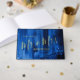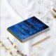 El azul zafiro se desvanece hasta el blanco moderno cepillo suelto pintado arte Mr & Mrs. little heart in gold Relieve metalizado, libro de invitados para bodas y eventos de aniversario. Personalice con sus propios nombres mensajes o eventos. Arte y diseño moderno abstracto original de Sarah Trett. www.sarahtrett.com para www.mylittleedenweddings.com