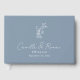 Este libro de invitados de boda presenta el clásico monograma floral francés en azul polvoriento y blanco con un moderno guión de caligrafía. El recuerdo perfecto para los recién casados para capturar los buenos deseos de sus invitados.