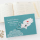 Un divertido pero elegante libro de bodas para parejas casadas en Ibiza, Isla Balear Española, con un mapa de silueta blanca sobre verde azulado de corazones de amor rojo dulce y tan fácil de personalizar con sus nombres personales y fecha de boda