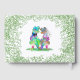 Libro de invitados de boda de dinosaurios T-Rex novia y novio con hojas de oro. Si ambos aman los dinosaurios, entonces este increíble libro de invitados de boda de dinosaurios es para ustedes con divertidos y coloridos T-Rex novia y novio y follaje de la jungla jurásica. Plantilla fácil de usar para que puedan agregar nombres y la fecha de la boda en un estilo de boda con tema de dinosaurios prehistóricos. Arte original de la artista Catherine Sweetman