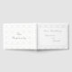 El diseño presenta un magnífico fondo de la imagen de encaje blanco en la cubierta frontal, la columna vertebral y la cubierta posterior. El texto se muestra en un elegante tipo de letra Nuptial de color plateado. Todo el texto es personalizable y está diseñado para coordinarse con la Suite Boda Católica Vintage White Lace.