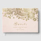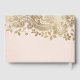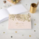 Elegante diseño de encaje floral vintage en un Relieve metalizado de oro fino y brillante sobre un suave fondo rosa, moda y romántico, ideal para una boda vintage moderna. Vea todas las piezas coincidentes de la colección a continuación.