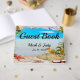 Los libros de bodas son divertidos tanto para la pareja como para sus famosos. Invite a los asistentes a que le dejen sus buenos deseos en la recepción, y se garantiza que tendrás un gran interés en mirar hacia atrás en los años venideros. Además, sus invitados podrán dejar su marca en su evento, sin mencionar que pusieron por escrito lo que no tuvieron la oportunidad de expresar en persona en el gran día. Personalice el libro cambiando el texto en los campos proporcionados. Puede cambiar el estilo de fuente, el tamaño y el color.