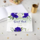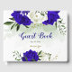 elegantes flores reales azules y blancas hojas verdes boda botánico libro de invitados Los detalles del purpurina dorado se simulan