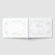 Boda Libro de Huéspedes con un marco de ramas elegantes con hojas azul verde. Hojas delicadas abstractas dibujadas a mano sobre fondo blanco. Fondo romántico de naturaleza floral. Resumen de las ramas foliares de la naturaleza. Diseño floral de primavera o verano vintage. Pintura de acuarela de la parcela botánica. Libro de Bodas de botánica verde suave. Colección de hojas verdes.