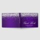 Purpurina fino y brillante de plata en el borde superior sobre un índigo color púrpura. Personalizar el elegante estilo clásico de caligrafía, el tamaño del color y la sombra de gota para crear tu propio libro de bodas. Idea de personalización: reemplace los gráficos de arte digital en la parte posterior por su propia foto de compromiso.