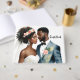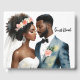 El arte acuarela presenta a una hermosa pareja de piel marrón como novia y novio. Este elemento melanado tiene una combinación de melocotón y corales con acentos florales. Personalizable/texto extraíble.