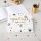 El Boda Guest Book de la moderna suite Boda Celestial Moon Sun y Stars es una impresionante incorporación a su día de bodas. El diseño tiene un bonito tema celeste, con estrellas negras y doradas, soles y lunas sobre un fondo blanco y fresco. El uso de estos elementos celestes crea una atmósfera mágica y mística, perfecta para parejas que aman celeste, astrología, mística, naturaleza, cielo, las estrellas, el sol o la luna. La escritura en el libro de invitados es de oro, lo que añade un toque de elegancia y sofisticación al diseño. El texto es una mezcla de impresión y escritura, lo que facilita la lectura al tiempo que se agrega un elemento decorativo a las páginas. Este libro de visitas no sólo es una forma práctica de recoger mensajes y buenos deseos de los clientes, sino que también sirve como un bello recuerdo que se puede apreciar en los años venideros. En la parte trasera del libro de visitas se ha optado por el mismo diseño celeste que en la parte delantera, creando un aspecto cohesivo que une a la suite Boda de estrellas y sol celeste moderno. Ya sea que planee un boda de temática celeste o simplemente le guste la belleza de las estrellas y la luna, este libro de visitas será un éxito tanto para usted como para sus huéspedes. Es la manera perfecta de capturar la magia de tu día especial y crear recuerdos duraderos. Agregue este Libro de Bodas a su colección de artículos de papelería para bodas y deje que sus invitados dejen su marca en su día especial. Ya sea que estén dejando mensajes sentidos, palabras de consejo o simplemente firmando sus nombres, este libro de visitas será un recuerdo preciado de su día de bodas.
