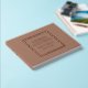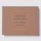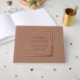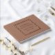 Color marrón mocha de moda, libro de bodas sencillo con Relieve metalizado estilizado en un borde cuadrado que incluye el nombre de la novia y el novio junto con la fecha boda en la elección de la impresión de Relieve metalizado a color. Visto aquí en rosa de Relieve metalizado dorado. Seleccione su estilo de libro de invitados.