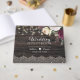 Diseño rústico de Boda de madera con detalles de encaje y una cuerda de luces. Los bonitos detalles florales están en primer plano y hacen de este diseño elegante y moda. El diseño es fácil de personalizar, si desea cambiar los tipos de letra haga clic en el personalizar. Este diseño es perfecto para bodas al aire libre y bodas temáticos en graneros. Diseñado para coordinar con nuestra colección de bodas "Rustic Floral Wood Boda".