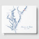 ¿Buscas un libro de visitas para tu boda en Atlantic City, NJ? Este mapa de visitantes de Chesapeake Bay incluye un mapa de la bahía de Chesapeake a mano con un corazón pequeño sobre la ciudad atlántica (puedes mover el corazón haciendo clic en "Editar usando herramienta de diseño" bajo "personalizar"). Personalizar con el nombre de la pareja y la fecha del boda en la portada y una foto en la parte trasera