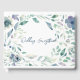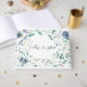 Flores primaverales de color malva y azul sobre un fondo blanco con espalda blanca y espina dorsal.