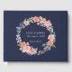 Este libro de bodas, que coincide con otros artículos de nuestra colección de bodas de guirnaldas florales de acuarela marina y color azul, cuenta con una guirnalda floral de color melocotón y agua azul con un sofisticado fondo marino.