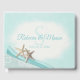 Libro de invitados de boda de playa vintage de estrella de mar con cinta azul aguamarina y encaje, monograma elegante y texto completamente editable.