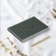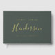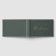 boda de color verde sabio oscuro y Relieve metalizado dorado diseñado por personalizados que presenta caligrafía moderna a mano con el nombre de la pareja, el nombre de la familia, la fecha del boda y la ubicación.