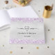 Un clásico fondo falso plateado con polvo de purpurina de lavanda. Agregue sus nombres y la fecha del boda. Personaliza y agrega tu texto en la columna vertebral.