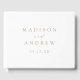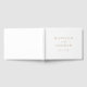 Elegante libro de bodas con sus nombres y fecha boda con letras doradas en un fondo blanco. Personalice la columna vertebral del simple libro de bodas con su nombre y fecha de boda casados.