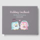 ¡Un bonito libro de invitados de boda para que los invitados escriban su amor y deseos para la pareja! El diseño presenta un pingüino azul novio con sombrero de copa y corbata de lazo y pingüino rosa novia con velo de corona y un ramo de flores. ¡Los pingüinos son compañeros para el resto de sus vidas!