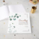 Eleva tus recuerdos bodas con nuestro exquisito libro de personalizados, un conservador atemporal que captura maravillosamente los deseos de tus seres queridos. Este libro de huéspedes, adornado con una tipografía de guión elegante y delicados motivos de eucalipto, combina perfectamente la sofisticación con el encanto romántico. La portada muestra sus nombres y la fecha de su boda en una elegante caligrafía, rodeada por un elegante conjunto de follaje que refleja la alegría y la belleza de su día especial. Con amplias páginas para que los invitados compartan sus sentidos mensajes, este libro se convierte en un querido recuerdo, que permite revivir el amor y el apoyo de la familia y amigos en los años venideros.