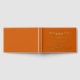 Un hermoso libro de bodas de Relieve metalizado dorado de color naranja quemado profundo con un embistimiento floral Texto es "Nuestros invitados Bodas", luego los nombres de novios y novios y la fecha de boda. El panel lateral dice "Nuestro Boda" en Relieve metalizado de oro