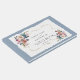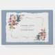 Diseño moderno y elegante con delicados ramos de flores de rosa nebulosa y azul polvoriento pintados a la acuarela, un marco dorado falso, papel de acuarela rasgado falso, sobre un fondo azul polvoriento. Utilice la herramienta Personalizar para agregar su información. Para artículos que combinan, visite mi Colección de Flores Azules Polvorientas Doradas.