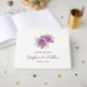 Este libro de bodas presenta rosas bonitos morados en un estilo acuático. Se puede personalizar con nombres de novias y novios y fecha de boda tanto en la portada como en la columna vertebral. Este libro de visitas forma parte de la colección de Bodas de Rosa púrpura que incluye una amplia gama de artículos de papelería para bodas que coinciden, como invitaciones a bodas, tarjetas de respuesta, tarjetas de información, etiquetas de dirección, sellos postales, sobres, cajas de favores, tarjetas de pozos de deseos, programas, menús, regalos de novias y mucho más. Visite la página de la colección en nuestra tienda para ver toda la gama de productos que puede personalizar para su boda.