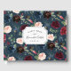 Invite a sus bodas invitados a compartir sus deseos y sabiduría con este libro de visitas con motivos florales. El diseño elegante presenta un elemento central con nombres y fecha boda, con texto personalizado adicional en la columna, sobre un patrón de fondo de flores acuarelas y follaje en marsala borgoñona, color rosa rubor, azul marino y verde eucalipto. Diseñado para coordinar con nuestra colección de papel para eventos Radiant Bloom.