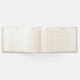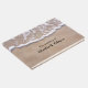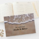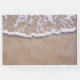 Elegante libro de bodas de temática playera con una fotografía del lavado de agua en una playa de arena. Personalice los campos de texto para su día especial. Hay productos bodas que coinciden.