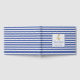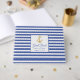 Elegante libro de bodas con temática náutica o franjas horizontales azules y blancas. El anverso del libro de visitas tiene un área de texto cuadrado blanco, decorada con gráficos de un ancla dorada. Personalice los campos de texto del personalizado para su día de boda.