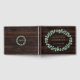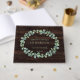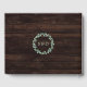 Diseño moderno con ramas de eucalipto acuarela, sobre fondo de granero de madera; sobre las iniciales de la parte posterior y el marco de eucalipto redondeado de los divisores verdes. Use Personalize para agregar su información. Para ver los elementos coincidentes, por favor, visite mi colección de vegetación Eucalyptus.